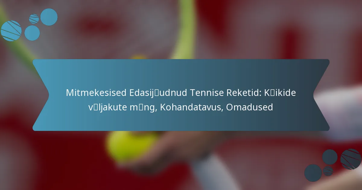 Tennisereketi kohandatavust mõjutavad mitmed peamised omadused, mis parandavad sooritust erinevates mängustiilides. Nendeks omadusteks on reketi kaal, tasakaal ja keelpillide pingutus, mis koos mõjutavad, kuidas reket reageerib erinevatele löökidele.
